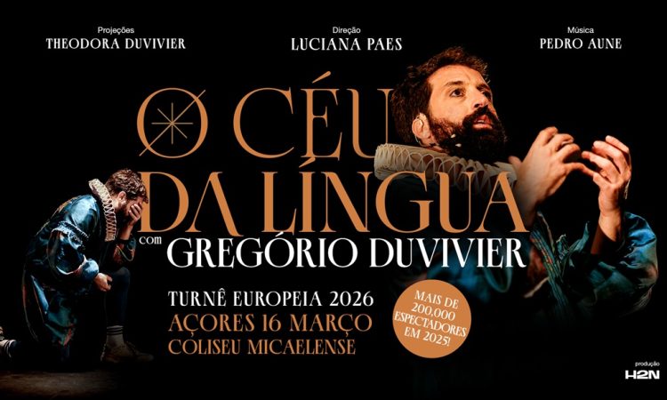 Depois de ter sido vista por mais de 200.000 espectadores em Portugal e no Brasil, O Céu da Língua, de Gregório Duvivier, regressa em grande para uma digressão europeia que promete voltar a emocionar o público numa viagem pela palavra e pelo poder da linguagem.
