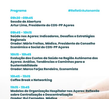 ÚLTIMASÚLTIMAS | CDS/Açores promove ciclo de conferências “Refletir a Autonomia”Mauricio De Jesus1 semana atrás7 de Abril, 2026217O CDS/Açores inicia, a partir deste mês de abril, um ciclo de conferências intitulado “Refletir a Autonomia”, que visa assinalar...
