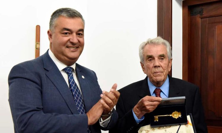 Numa cerimónia que decorreu no Salão Nobre do Edifício dos Paços do Concelho, acompanhado por familiares, amigos e representantes da Sociedade Civil, o Homenageado recebeu das mãos do Presidente Luís Silveira, a Chave de Ouro do Município.